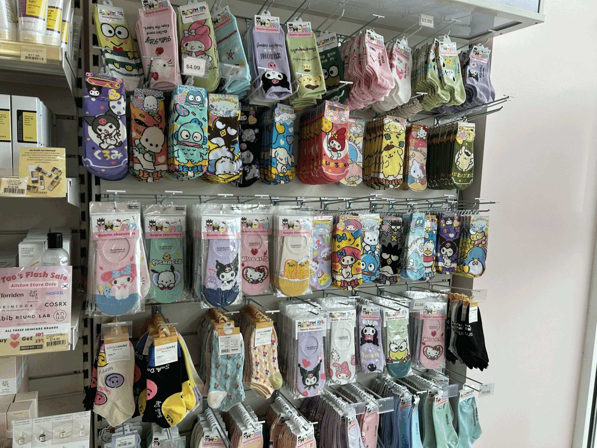 Tao’s is an Asian cosmetic store that also carries a few Sanrio items. They have two store locations in Massachusetts, one in Chinatown, and the other in Brighton. While they do mainly sell non-Sanrio cosmetic items, they also carry some Sanrio keychains, socks, hairbrushes, makeup wipe holders, and lip care products. When I went to the store it was really cute! It is also near a lot of food places and a Boba shop. The prices for the keychains were high, but everything else ranged between $10-15. It is important to note that it is only a small portion of the store that has Sanrio items, but they do have an online store. On their online store, they do have a lot more items than they have in the actual store.