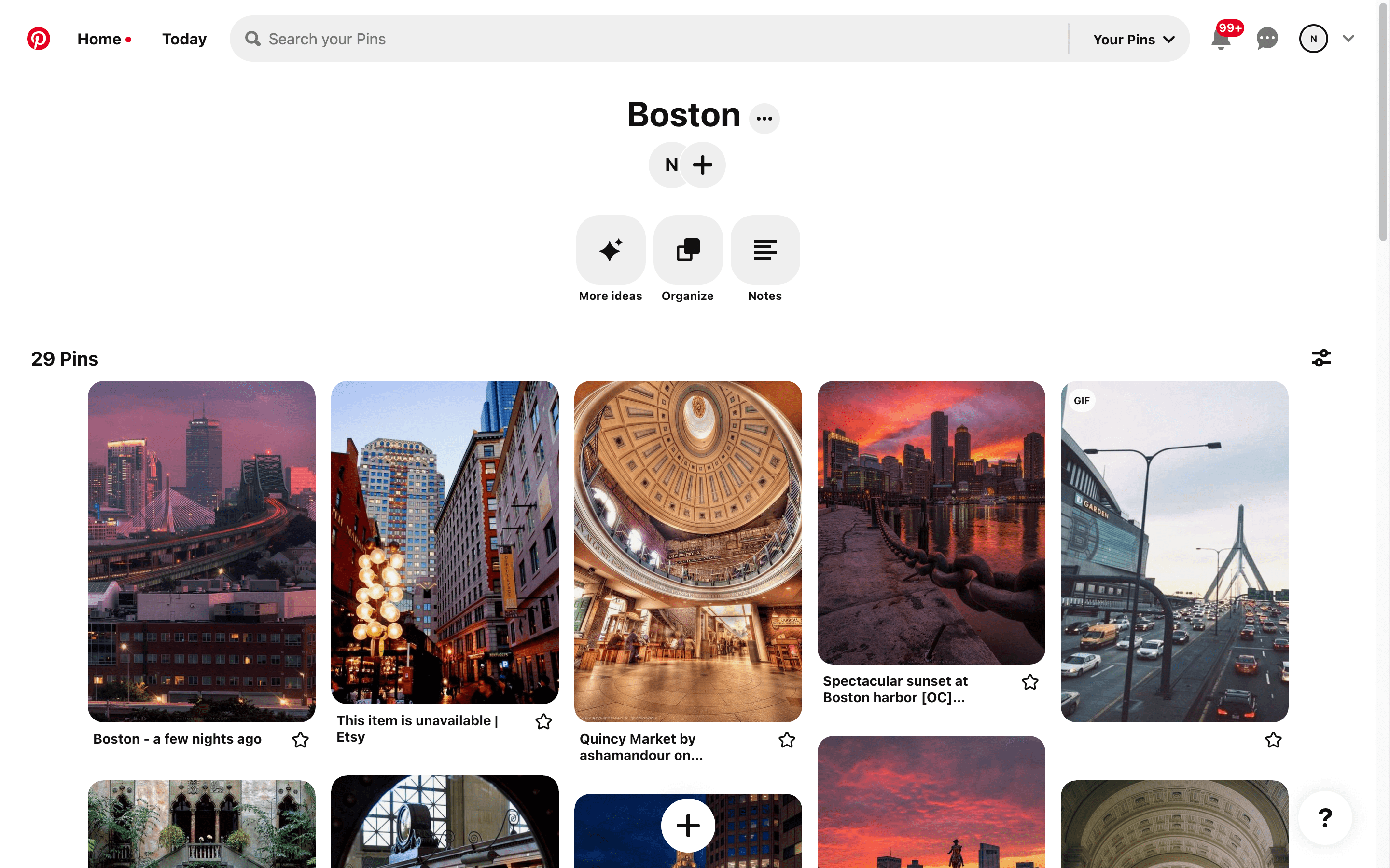Pinterest boards are also a great way to find inspiration. The best way I use a Pinterest board is by searching where I am, and then searching for photos (ex. Boston Photos). From here I make a board and choose the photos I like based on angles, location, landmark, etc.
