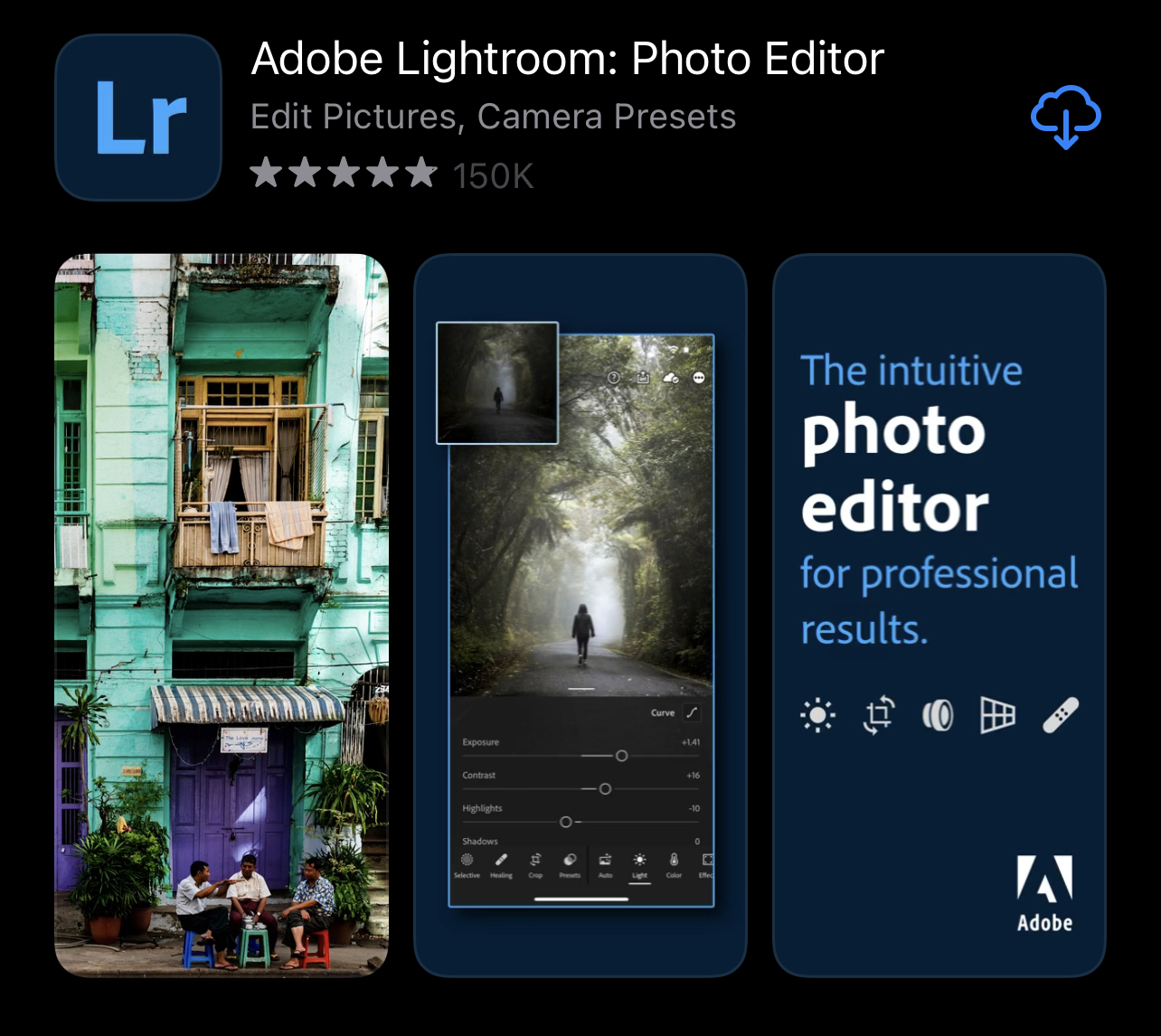 Now, on your phone, Lightroom is free, which is great. Lightroom is great for any basic edits like changing the exposure or warmth of your photo and is easy to use.