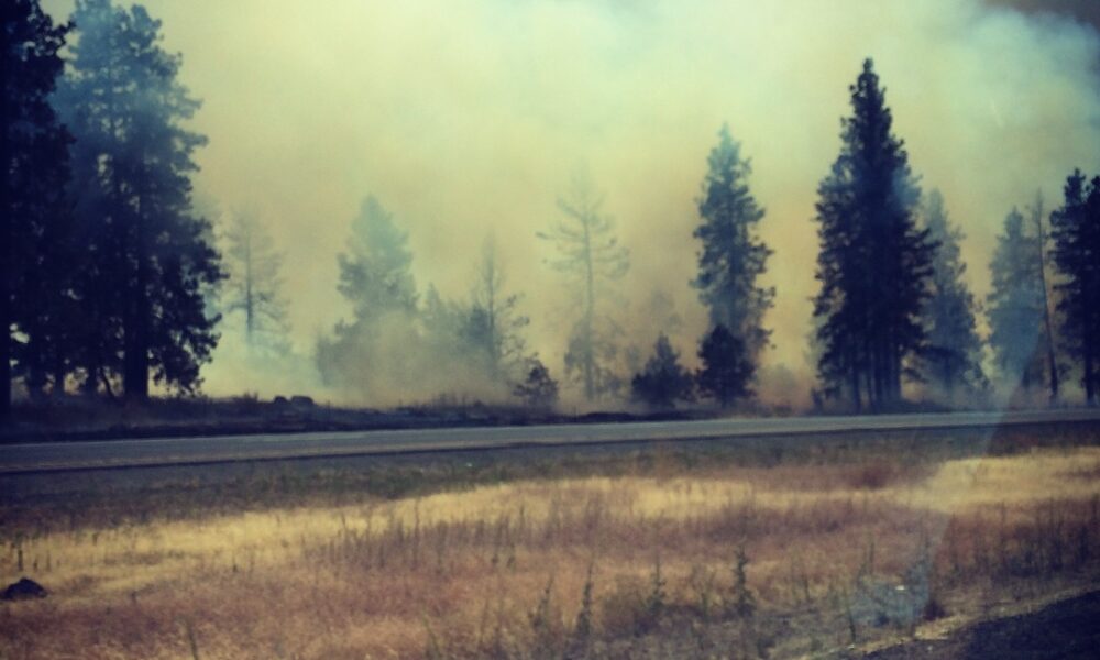 It is the end of a chaotic weekend and we are driving to meet the rest of my family in Central Washington for a week. I am with my little sister, my dad, and my dog as we drive through the rolling hills of Spokane. My sister and I are floating in and out of sleep until I hear my dad say, “Winona, Delila, wake up, look outside!” I stretch out of my uncomfortable half sitting, half lying down position, and look out the window. I see in a distance smoke swirling into the sky and bright orange near the trees. As we get closer, our car fills with the smell of smoke. I pull my shirt up over my nose to avoid the smell. I reach for my phone in utter shock at what I am seeing. In front of me are trees on fire, across the highway, eastbound lanes are closed, and I turn behind me and see the fire rapidly come towards our lane. We are stuck in traffic, and I start to worry. I am scared. I feel like I am stuck in a cave and the entrance is closing. I start to hyperventilate, but then the traffic starts to clear, and my dad steps on the gas. The smell of smoke starts to fade, and the further we get away, the sky starts to clear. Everything returns to normal except for me. I can not believe what I just saw. If we had left any later from our hotel we would not have made it across the highway or we would have been stuck in the fire. I feel the fear leaving my body slowly as miles start to mount between us and the fire raging behind us, but the fear never is completely gone again. The weather inside me is gray, and in the corner, you can still see the orangish-brown of the fire.