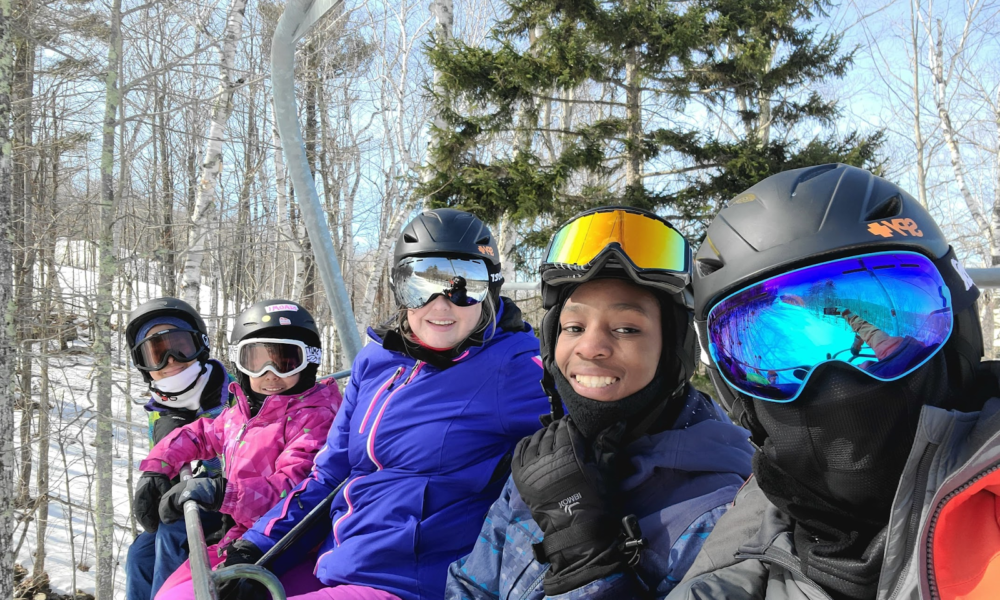 This was in March and we were at Ragged Mountain in New Hampshire. I got to snowboard that day and my mom, dad, two sisters, and I took a group photo. It was pretty cold but I enjoyed my time and was happy because I got to ride a lot of new trails and have overpriced food.