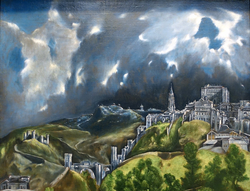 View of Toledo by El Greco is a landscape painting that captures important highlights in the painting. This painting is a bit different from the previous one; it has many layers that it creates to make a far view. This painting has many details which adds to the effect of making the buildings look farther. The highlights in the bushes and trees, make it look like the wind is being blown on it which connects to the sky. It’s dark and it looks like an intense storm which adds to the effect of the blowing trees. What makes this painting cool is that wind doesn’t have color so the artist did an amazing job making it clear that there’s a storm while adding the details of the trees blowing using highlights.
