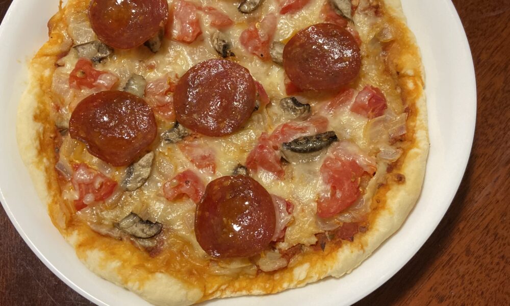 Pizza — Attempt number six (I think, or a number around six) of making an appetizing dinner.